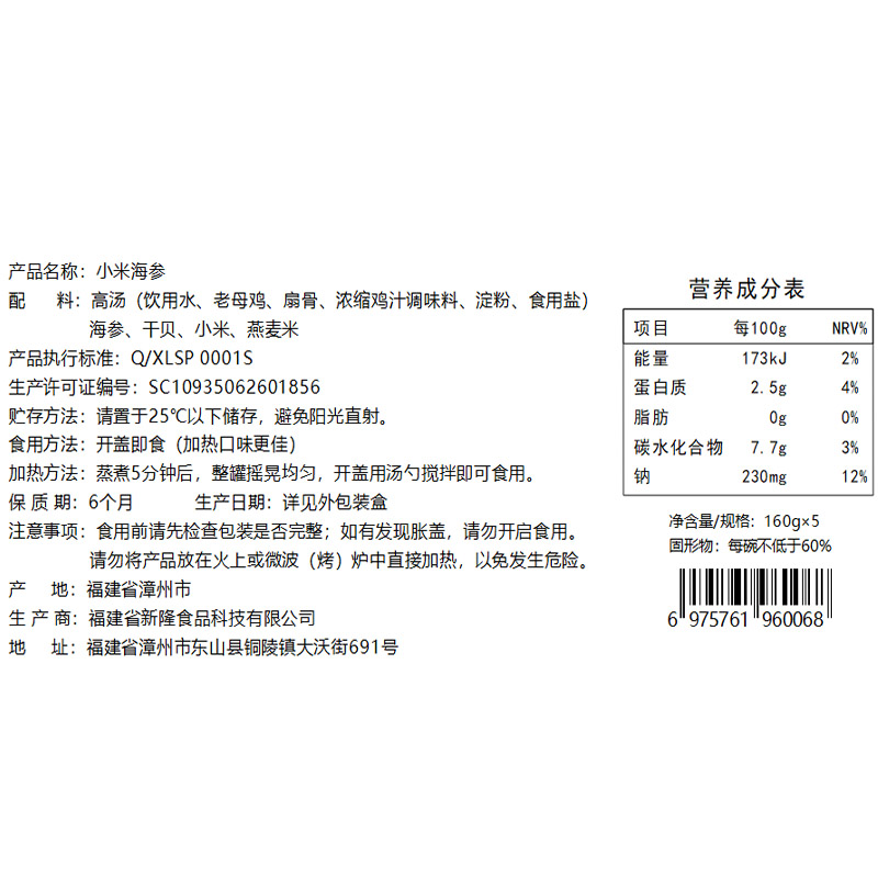 材料: だし汁(飲料水、老鶏、豚ファン骨、濃縮鶏汁調味料、でん粉、食用塩) ナマコ、ホタテ、キビ、オーツ麦