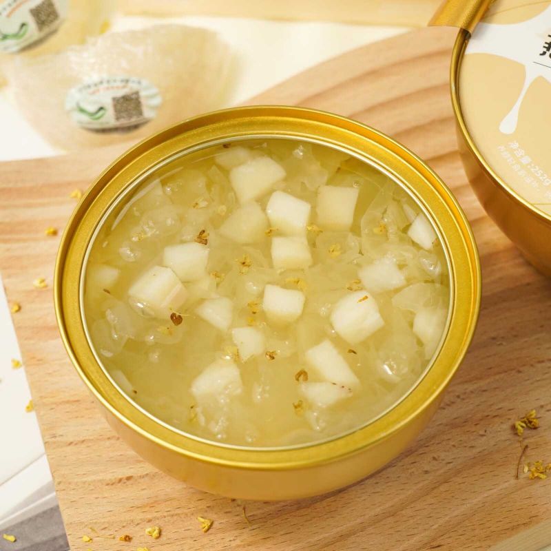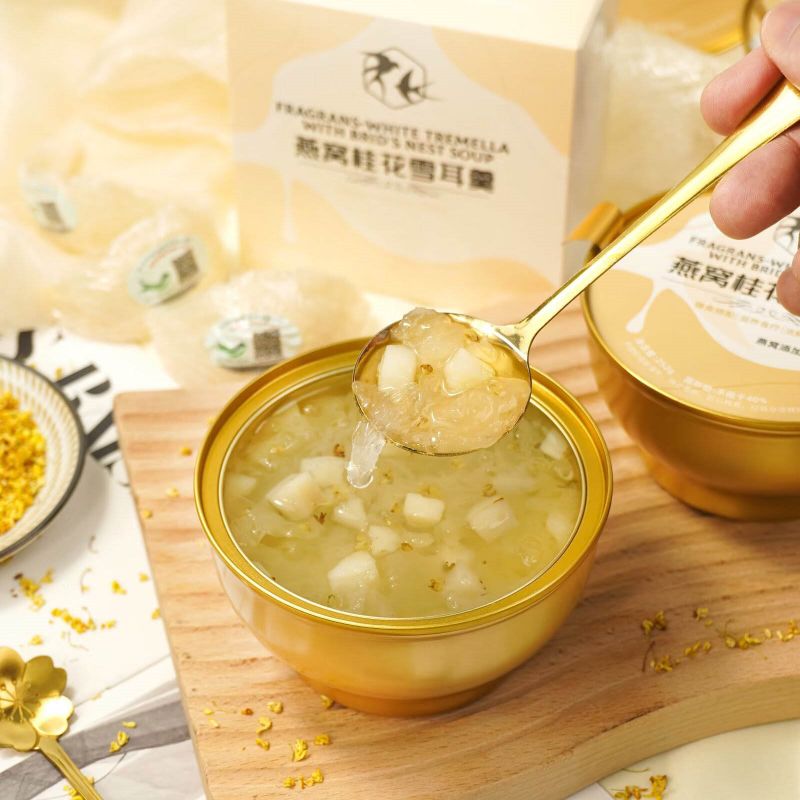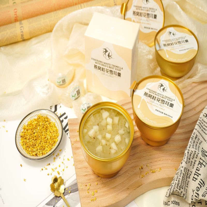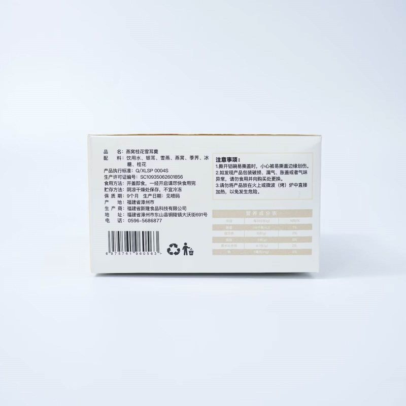 材料: 飲料水、白キクラゲ、ユキツバメ、ツバメの巣、氷砂糖、キンモクセイ