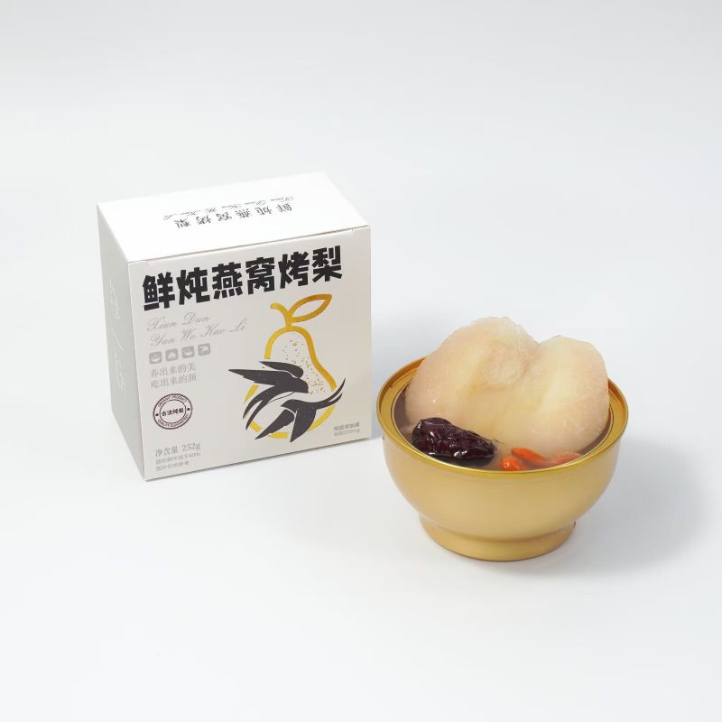 ツバメの巣の煮込み 焼き梨は、厳選された新鮮なツバメの巣を原料とし、独自の煮込み製法により繊細で柔らかな特徴を残しています。一口ごとにツバメの巣の豊かな風味が広がり、何層もの味わいを楽しめます。丁寧にローストした洋梨は甘くて魅力的な香りを放ち、この珍味に自然な甘みを加えています。