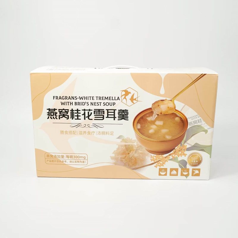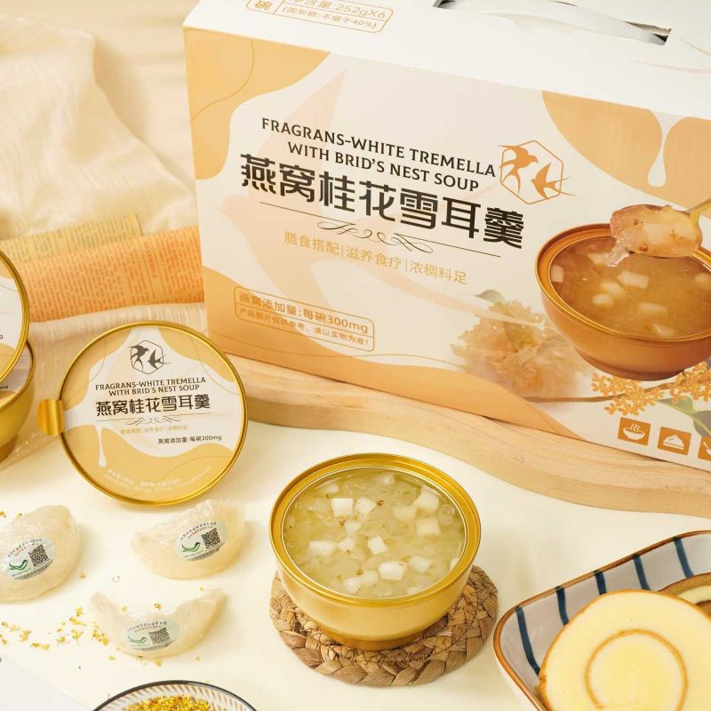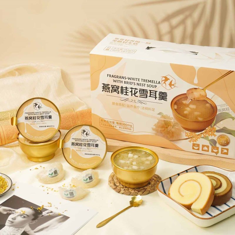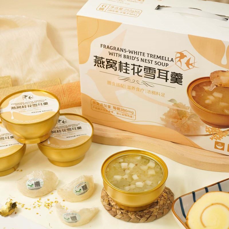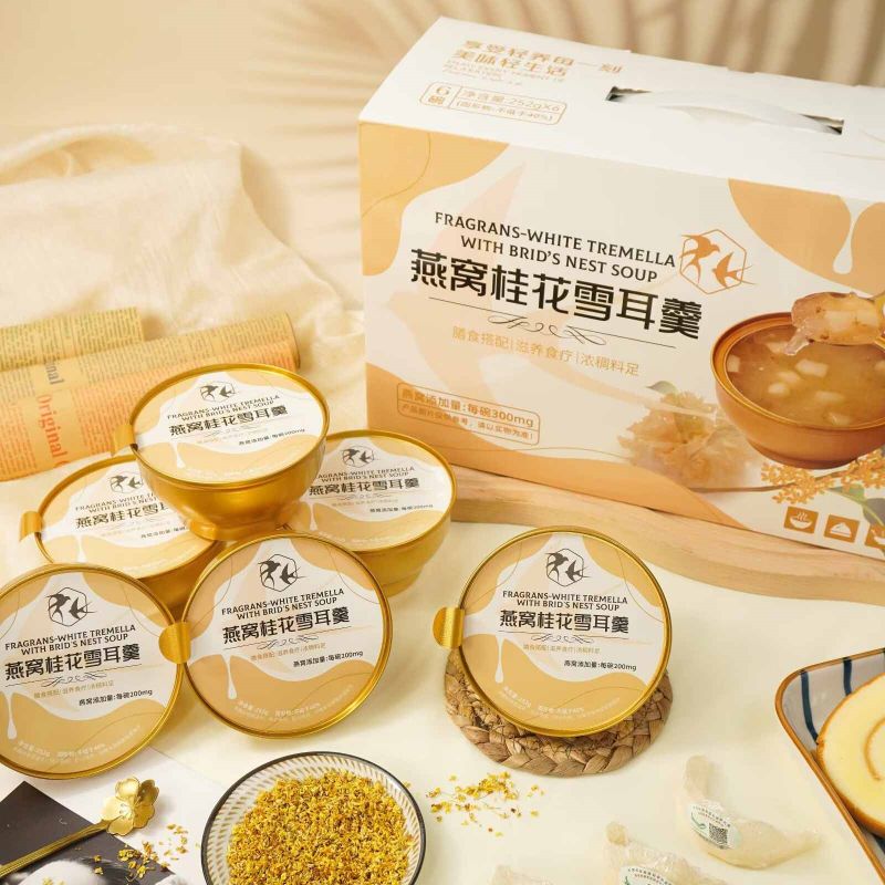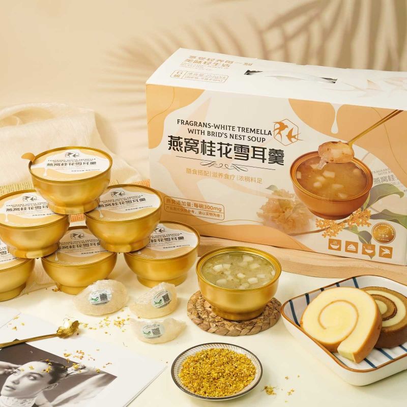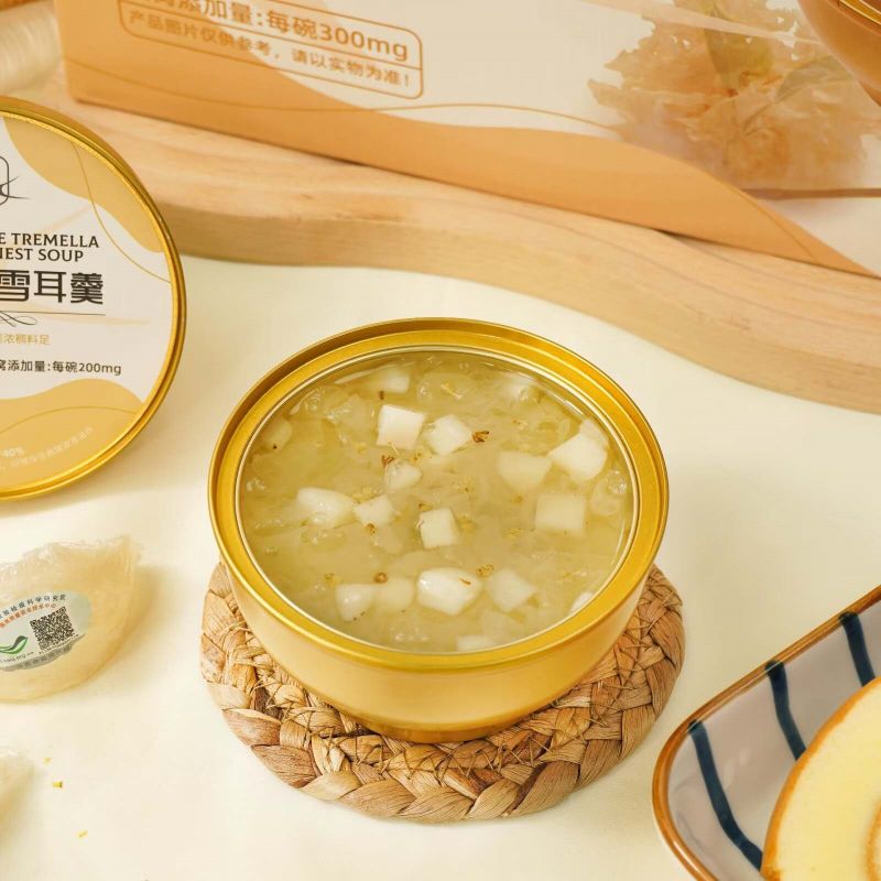 思いやりのある健康を意識したギフトとして、Fragrans White Tremella とツバメの巣のスープをプレゼントしてください。美しく包装されたこのスープは、友人や家族への理想的なプレゼントになります。早くお見舞いの気持ちを伝えるためでも、感謝の気持ちを表すためでも、このギフトは彼らの健康に対するあなたの気遣いを反映し、体に栄養を与えるおいしい方法を提供します。